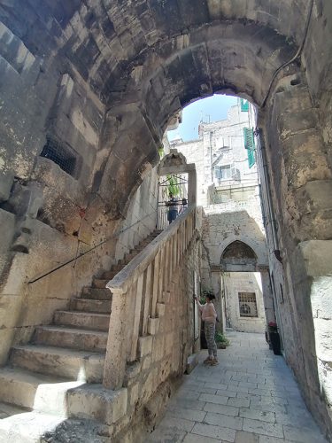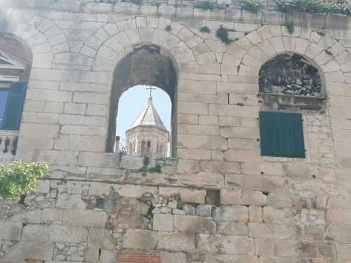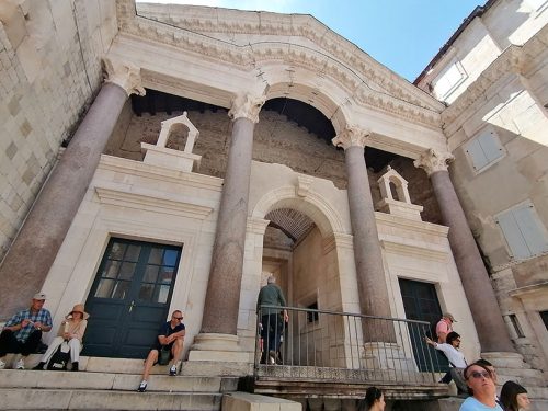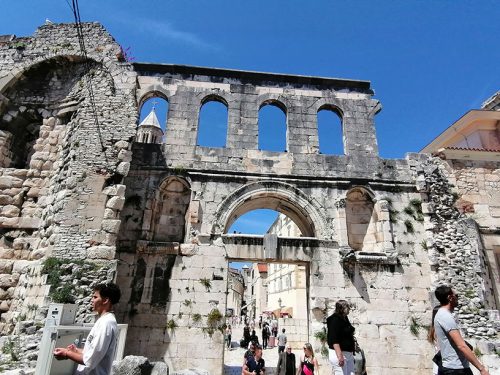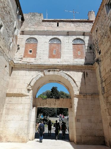 Then we went to see what is called the Crown Jewel of the old town, Diocletian’s Palace, which is actually a monumental complex that houses a great part of the old town and different monuments, among which the basements of the palace stand out, the Perystile Square which is the heart of the palace and where you can see an Egyptian Sphinx from the 15 century BC and the Cathedral of St Domnius an octagonal building converted into a church in the 5th century, with the bell tower added in the 13th century. The entrance to the palace is through 4 gates, the most striking being the Bronze Gate, the Silver Gate and the Gold Gate. Here you can see the Silver Gate.