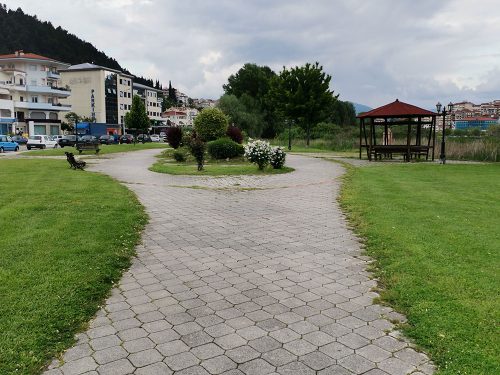 We stayed in a paid parking (40.520199, 21.261299 lat, long) in the town centre and right in front of the lake. A great location to visit the town with the best views of the lake and surrounded by gooses. We paid 3 euros from 11 am to 9 am the next day.