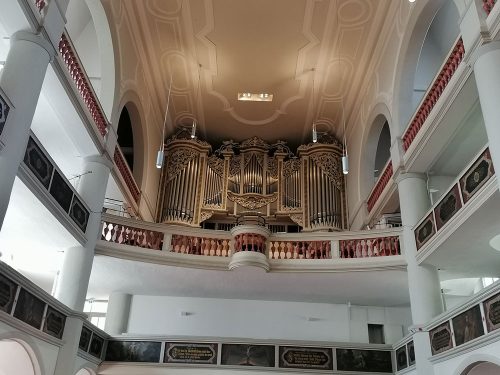 We then arrived at the picturesque market square with half-timbered houses and notable buildings of the city in baroque style such as the Town Hall and the Church of St. George, where the famous composer was baptized, and where he later worked there as an organist. When we got to the church they were closing but the kind security guard let me go in and see the inside, where the first thing you find is a huge statue of Bach.