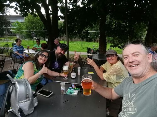 While walking around we discovered a local beer called Martha Sexy Blond and went to a pub so Marta could try it. And we ended up in our motorhome so they could check it out. Javi thinks that living in a motorhome is like living on a boat!