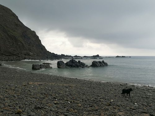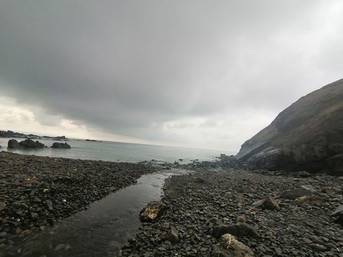 We parked right on Duckpool Beach, and you are greeted by spectacular scenery and a beautiful unspoilt rocky beach with a fast-flowing stream running into it.