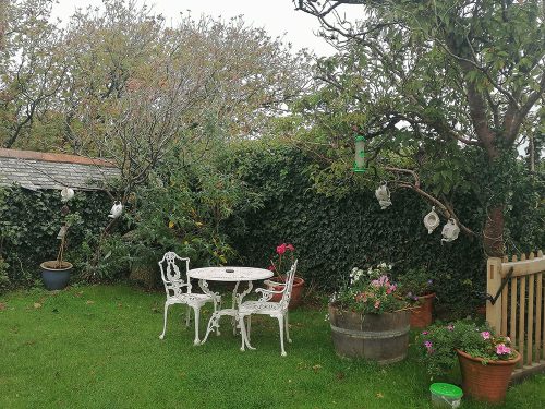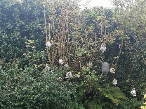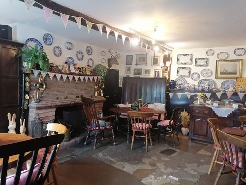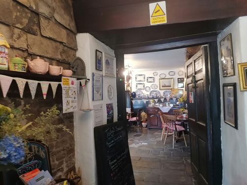 We returned to where we had parked at the 13th-century Vicarage Farm, now a tea room and went inside to see its terrace with teapots hanging from the trees and the interior.