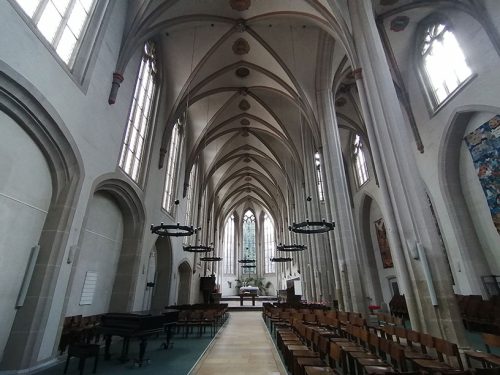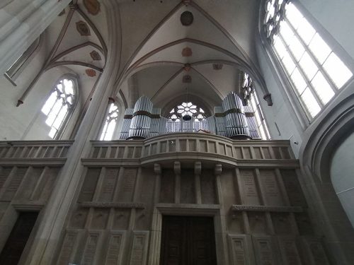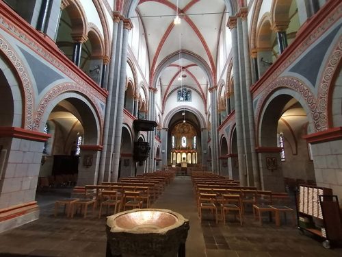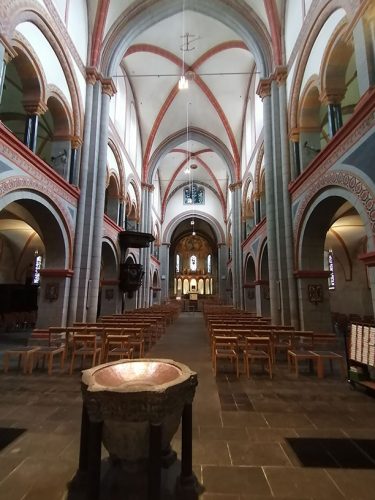 Nuestra siguiente parada fue la Catedral de María, una iglesia parroquial católica, construida alrededor del año 1200 como una basílica romana con galerías y tres naves. Son notables el interior y las pinturas ornamentales de Mariendom.