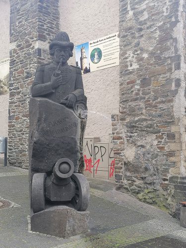 Hay mucho que ver en Andernach, nosotros nos fuimos andando y lo primero que te encuentras es el Baluarte y su capilla. La capilla es llamada la Capilla de las imágenes de la izquierda. El Baluarte fue construido entre 1659 y 1661, era usado como un puesto de aduana para controlar los barcos en el Río Rin y también servía como un rompehielos para proteger las murallas de la ciudad. Hoy en día, la construcción es un monumento a los soldados que murieron en ambas guerras mundiales.