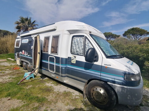 Nos quedamos en el Camping Tamaris (43.23948, 6.660526 lat, long) porque era el sitio más cercano para visitar Saint-Tropez en moto. El camping cuesta 25 euros con electricidad incluida, en temporada baja. Habíamos reservado el día anterior, pero cuando llegamos vimos que los sitios eran demasiado pequeños para nosotros. Tuvimos que aparcar en una zona justo a la entrada donde estábamos solos. El área para vaciar y llenar agua está al lado del baño, por lo que solo puedes vaciar o llenar el tanque si estás aparcado cerca. Nosotros no pudimos. Las instalaciones son viejas. Los baños tienen asiento pero no papel. Las duchas están calientes si la usas cuando nadie más la está usando, si no, el agua está templada. Hay wifi, pero solo por 10 minutos y la señal 4G no es muy buena. Los cubos de basura están fuera del camping, en el aparcamiento de enfrente. Lo único bueno de este camping es que está cerca de Saint-Tropez y junto a la playa. Nos pareció carísimo para lo que ofrece. En primavera sube a 38 euros al día y en temporada alta a 54 euros.